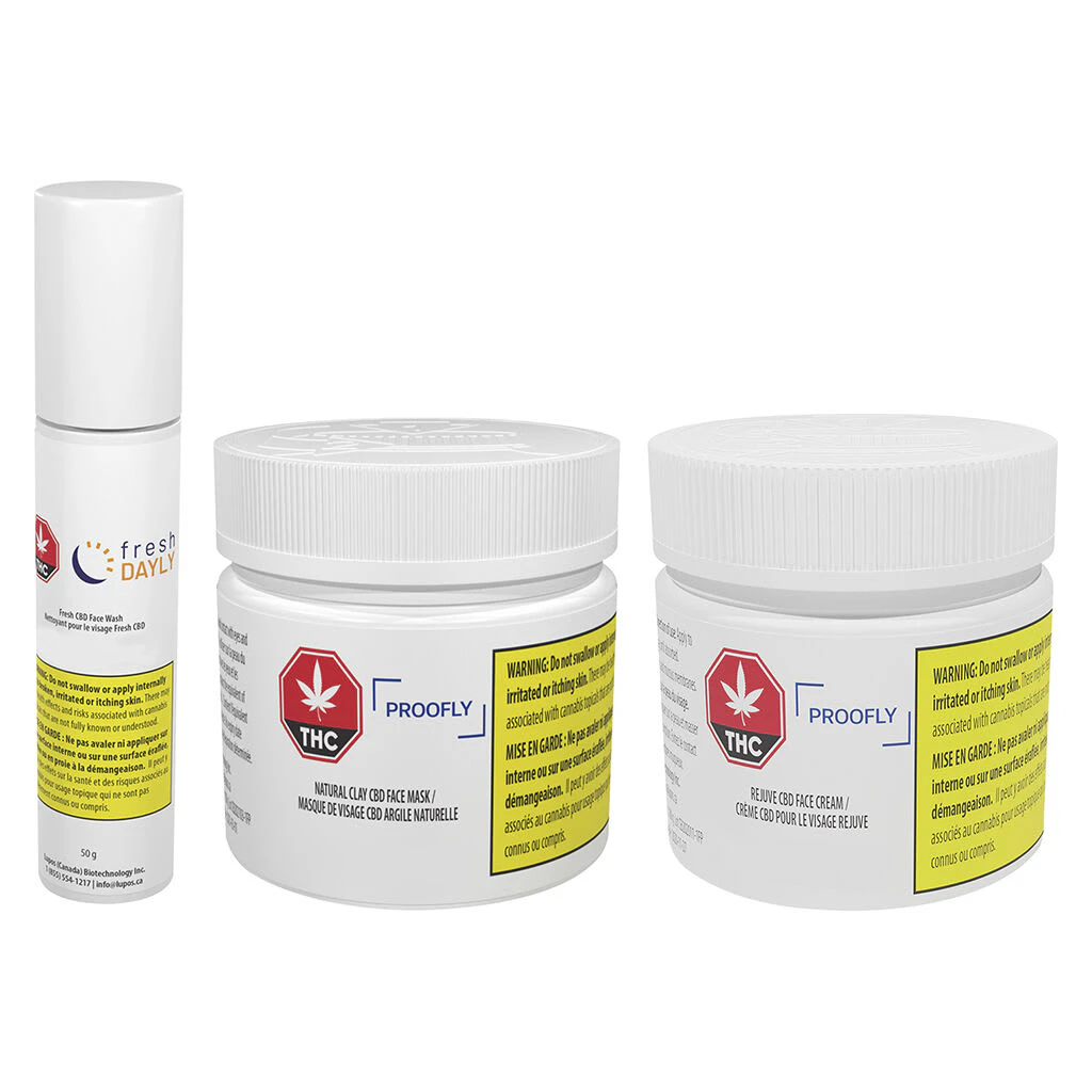 PROOFLY - Natural Clay CBD Face Mask: This all-natural deep cleansing face mask with a light rosy scent and light grey colour contains 500 mg CBD and high-quality kaolin clay. All natural, made without animal products or GMOs. Free of Parabens, Alcohol, synthetic fragrances and colours.